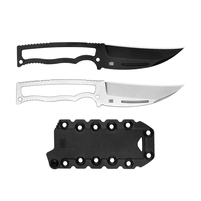 The CFK-02 Pikal from Halfbreed Blades is a precision-crafted fixed blade built for tactical and everyday utility. Featuring a Japanese-made 4mm Bohler N690 stainless steel blade, this knife offers corrosion resistance, edge retention, and toughness in an ultra-lightweight package. The Pikal-style blade is optimized for dynamic cutting, while the minimalist, full-tang skeletonized handle offers balance and weight reduction without compromising strength. Ergonomic jimping and a large finger choil provide superb grip and control, even in high-stress environments. The stealthy PVD coating reduces glare and increases blade longevity, with an optional stonewash finish ideal for food prep tasks. The CFK-02 includes a precision-molded injection sheath compatible with PALS/MOLLE, Ulticlip, and DOTS Belt mounts—plus it's neck-carry capable. Whether on mission or in your EDC rotation, the CFK-02 delivers compact, high-performance reliability.