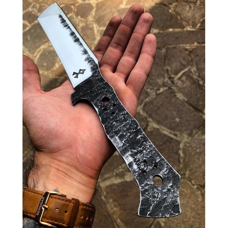 Behold the Twins Knives Thrower, a stunning hand-forged blade crafted from 80CRV2 carbon steel, designed for precision and power. This badass knife, custom-made for @lowik64, features a rugged, textured handle and a razor-sharp, etched blade, perfect for expert throwers. Its brutal beauty shines through its sleek design and durable construction, making it a standout piece for collectors and enthusiasts alike. Ideal for dynamic outdoor use, this knife combines traditional forging techniques with modern strength, ensuring reliability in every throw. The minimalist yet striking aesthetic, showcased against a natural backdrop, highlights its craftsmanship. Whether for display or deadly accuracy, this thrower embodies skill and heritage. Get ready to witness its prowess in action, crafted to impress and endure with every spin.